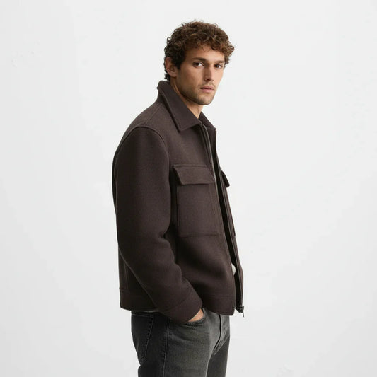 Men’s Premium Wool-Blend Brown Utility Shaket