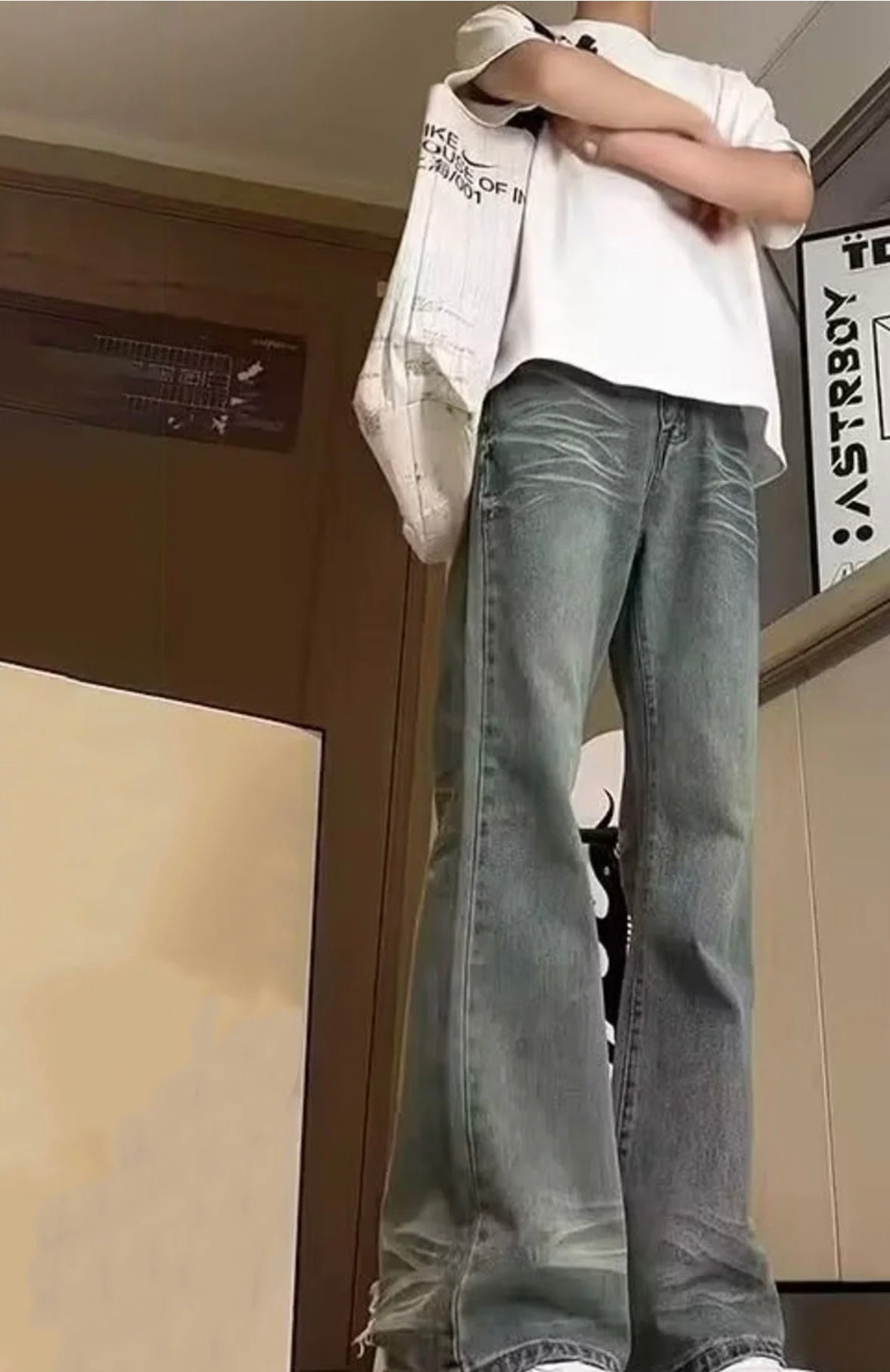 Men’s Retro Washed Wide-Leg Jeans – Vintage Loose Fit Streetwear Denim
